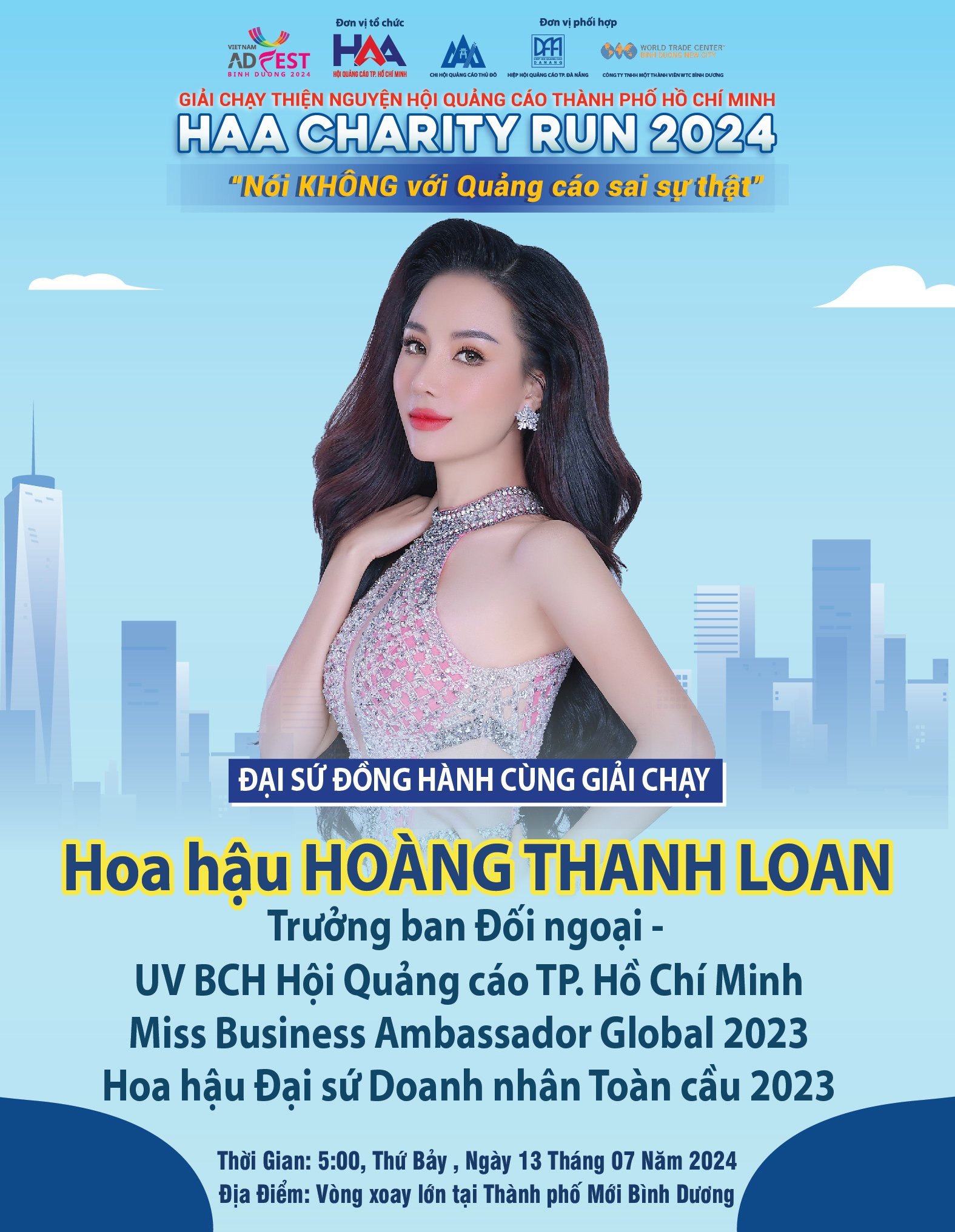BTC Hân hạnh giới thiệu Đại sứ đồng hành cùng “Giải chạy HAA CHARITY RUN”, Hoa hậu Hoàng Thanh Loan – Trưởng ban Đối ngoại – UV BCH Hội Quảng cáo TP. Hồ Chí Minh/ Miss Business Ambassador Global 2023 – Hoa hậu Đại sứ Doanh nhân Toàn cầu 2023.